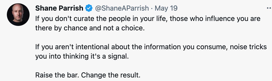 Just as you watch what you put into your body or your mind, closely look at who you spend your time with. Are they kind? Are they honest? Are they thoughtful? Are they thinking clearly? In short, are they who you want to become? If not, don’t tempt fate, cut back.